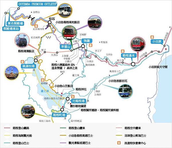 箱根的交通路線是環狀的,所以只要買張旅遊券就可以環遊箱根。
